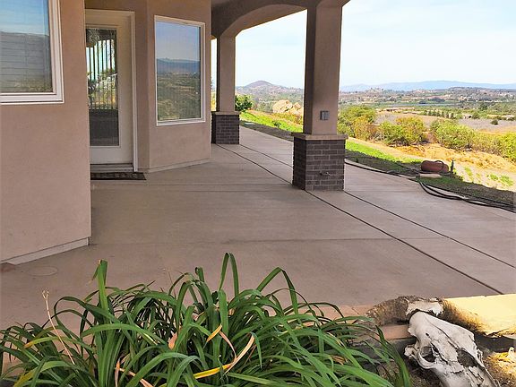 3+ acres of gradual sloping usable land with panoramic views of the Palomar Mountain range. Gently swaying palm trees lead up to this 2 story, mediterranean style, custom built home. Oversized master bedroom, bath, and closet! Gourmet kitchen w/kitchenAid dishwasher, double ovens, Jenn-Air 6 burner cook top, & Quartz counter tops. Built-in storage in garage, workshop/workbench, & insulated garage doors. 2nd story has separate entrance & full 2nd kitchen, use for guest house or rental income