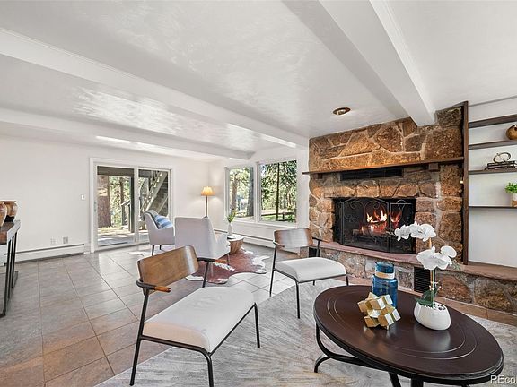 Tastefully Updated Home in the Heart of Evergreen. This beautifully updated 3-bed, 3-bath bi-level home in North Evergreen blends mountain charm with modern style, offering comfort and convenience in one of the area’s most desirable locations. The thoughtfully remodeled kitchen is the heart of the home, featuring rich hickory cabinets, stainless steel appliances, slab granite counters, and a tasteful tile backsplash, creating both function and beauty. Natural light flows through newer windows, highlighting the designer-textured ceilings, updated light fixtures, and fresh new paint inside and out. The inviting family room is warmed by a wood-burning fireplace framed with native stone and complemented by a flagstone hearth—perfect for cozy Colorado evenings. Updates continue throughout with newer raised-panel doors, brushed nickel hardware, and an updated half bath that reflects quality and attention to detail. The home offers baseboard hot water heat for consistent comfort, as well as stylish tile inlays that add a custom touch. Step outside to the covered patio and enjoy breathtaking views of Elephant Butte and Bear Mountain, along with a large, open yard ideal for play, gatherings, or simply relaxing in the mountain air. Enjoy Evergreen’s shops, dining, and year-round activities, with easy access through the canyon via Kittredge and Morrison to Denver, or head west to the mountains for world-class recreation. Tucked away on a peaceful cul-de-sac, this home offers the perfect balance of mountain living and everyday convenience. With its thoughtful updates, inviting charm, and prime North Evergreen location, it’s ready for you to make your own.