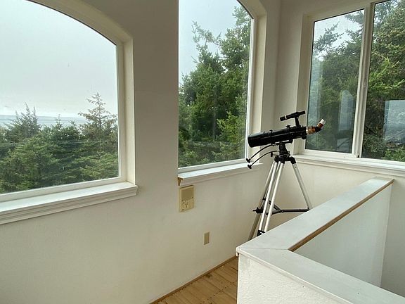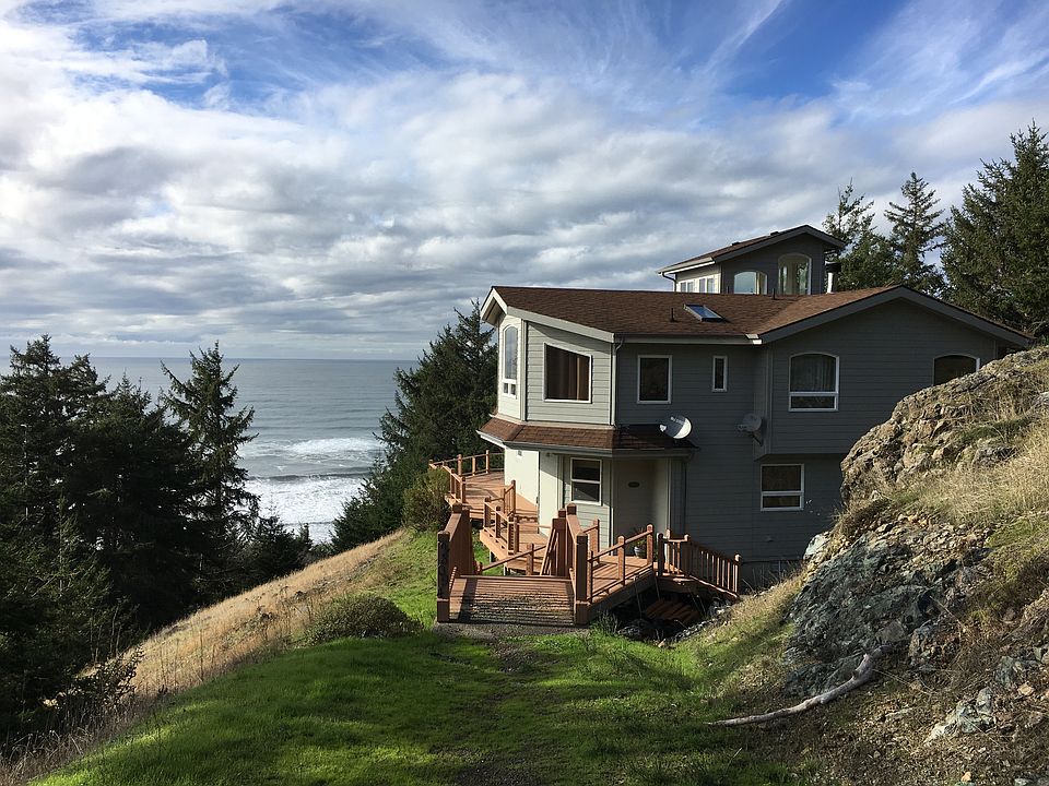 This custom four bedroom home is built on its own 9+ acres of oceanfront. The site is private and you can walk down its own private stairs to the beach. There is a very large detached garage/workshop and deck that expands your outdoor living space.