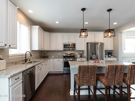 Wow, Stunning new construction in 2015 on a premium home site with unbeatable views of open fields and grazing horses. It is like no other in the development! Open floor plan perfect for entertaining. First floor features open kitchen to great room and a spacious first floor office/bedroom. Gourmet kitchen has granite counters, Stainless appliances, huge center island, walk in pantry and butler service area. Gleaming hardwood floors, staircase and designer colors. 4 bedrooms upstairs w/ master featuring private luxury bath, soaker tub and separate shower. All custom window treatments included. Laundry located on 2nd flr. Bright English basement. No expense spared in this backyard retreat...Approx 75K with upgrades in landscaping that includes low maintenance Endless Pool Fitness System, huge Trex Deck, brick paver patio, river rock landscaping. Cul-de-sac location. Easy access to Rt 59 & Rt 12. Surrounded by 8 acres of conservation space and walking trails. Fox River Preserve & Marina close by. School bus service. This house is amazing and will not disappoint.