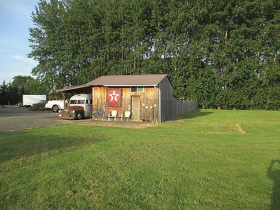 This 3972 sq ft home is great for entertaining. the kitchen is almost 500 sq ft, with a 950 sq ft (250 covered) deck off of it. Laundry in the master closet, as well as a separate laundry downstairs. Downstairs also has a kitchenette. The barn is insulated with a heat pump and concrete floors. Between all the garage space, approximately 15-20 cars could be covered. Just finished 720 sq ft outdoor party room, pine ceiling, can lights, rock fireplace, "outhouse"; with 1500 gallon holding tank. There is a "Drive-In Movie" screen out back that doubles as a shed. The vintage gas station is where I keep all the yard implements, etc. The downstairs of the house is separated by a door, and represents as a mother-in-law suite. It has front and rear exterior entrances, its own laundry, 2 full baths, and 2 generous bedrooms. It could be used as a party room with your big screen, pool table, etc. Dishwasher, farm sink, Frig, and room for a stove if desired.
