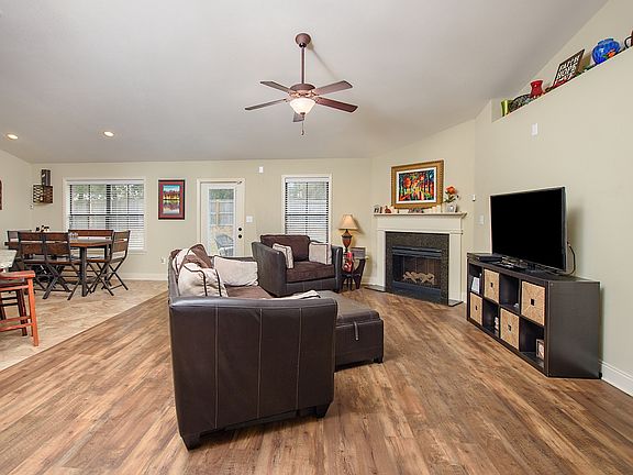 Welcome home! This breathtaking former Model home will literally take your breath away. Three spacious bedrooms in a split plan allow for maximum privacy. Master suite is just off the kitchen and breakfast. It features an ensuite bathroom with soaker tub, separate shower, and dual vanities. Wake up in the morning looking out to the level fenced backyard or read in bed under the trey ceiling with recessed lighting and ceiling fan. Master is definitely a private retreat from the world. Imagine having a weekend cook-out with neighbors and friends. Massive kitchen with breakfast bar and dining table looks out to an open patio for grilling or visiting around the fire pit. Kitchen boasts stainless appliances and granite counters. Comfy family room is centered around the fireplace. Formal dining room is currently used as additional conversation area. It would also be great for a home office. Both guest rooms are spacious and inviting. New LVP flooring in the family room and hall. This property is going to sell quickly. Don't wait to set up a private showing!!!