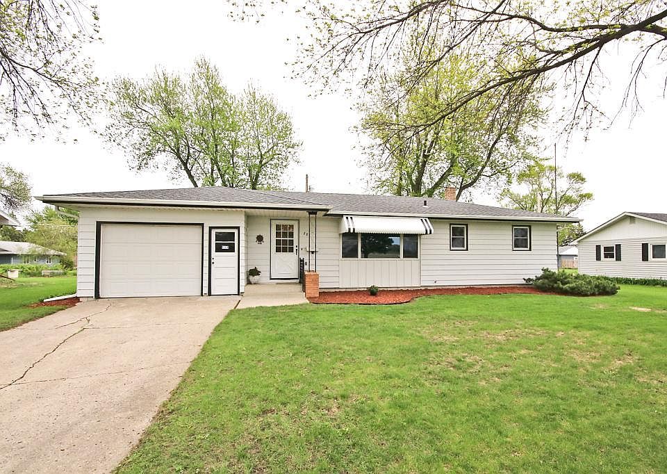 One story home with 3 bedrooms and 2 baths on main floor. Main floor laundry, hardwood floors, family room with electric fireplace and den in lower level. Steel siding and vinyl windows. Great location on a quiet dead end street and close to church, school and pool. Home Warranty included.
