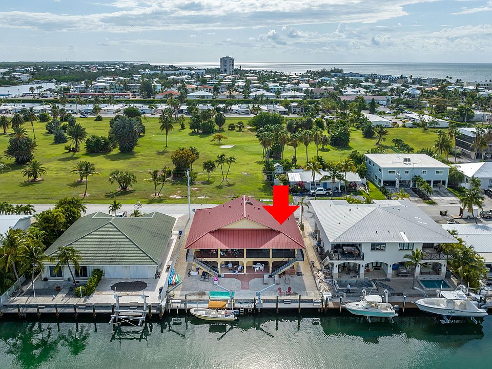 The living is easy in this two story paradise home! With almost instant Vaca Cut access from its private 37ft. dock, quick Ocean & Gulf access is easily achieved! Generously proportioned half-duplex with soaring wood ceilings, granite kitchen and open living spaces that flow effortlessly out onto the wrap-around covered balcony overlooking the 100ft. wide canal. Enjoy peaceful golf course views from the master bedroom equip with a sleek on-suite bath. Completing this level is another spacious bedroom and full bath before heading down the interior stairwell to the 1bedroom/1 bath apartment, the perfect space for visiting guests. Fully furnished & ready for weekly rentals if you choose. Solid concrete home with Newer metal roof (2018) and hurricane impact windows & doors. Paver driveway provides ample space for both vehicles & a boat trailer plus some covered parking too. Come live the Key Colony Beach Lifestyle!