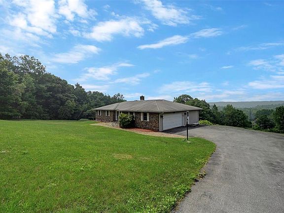 A VIEW FROM EVERY WINDOW & DOOR! This 3BD/2BTH Ranch w/ brick façade is one-of-a-kind & has a 2 car garage w/ paved driveway & sits on 1.91 manicured tree-lined acres w/ VIEWS in Stroudsburg! Enjoy an easy-flowing floorplan, lots of natural light throughout, & everything on one level for easy living. The Living Room boasts a vaulted ceiling, a wall of glass doors & a wood fireplace with brick surround. Dine in the Formal Dining Rm or in the well-appointed Eat-In Kitchen featuring Corian countertops w/ tile backsplash, plenty of cabinetry & a large island. Each Bedroom is spacious with dbl closets & the Primary Bedroom is HUGE with a walk-in closet & private bath with full shower. Step out onto the 43x11 back deck & catch a breeze & enjoy the views! The Basement is unfinished, expandable & includes a partially finished storage/workshop area. Central A/C & low taxes too! No Dues—No Development & minutes to major roads, shopping, local attractions & amenities! SEE OUR VIRTUAL TOUR!