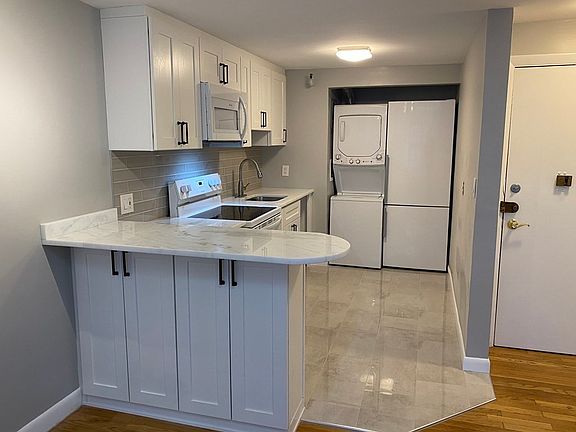 Brightly renovated and ready for immediate occupancy! Come view this simple and efficient one bed, one bath with hardwood floors in the main living area and bedroom, and tile in the newly installed white kitchen with quartz counters and recently updated bath. The landlord is offering a 13 month lease with 1 free month, or 18 month lease with 2 free months. Easy to view!