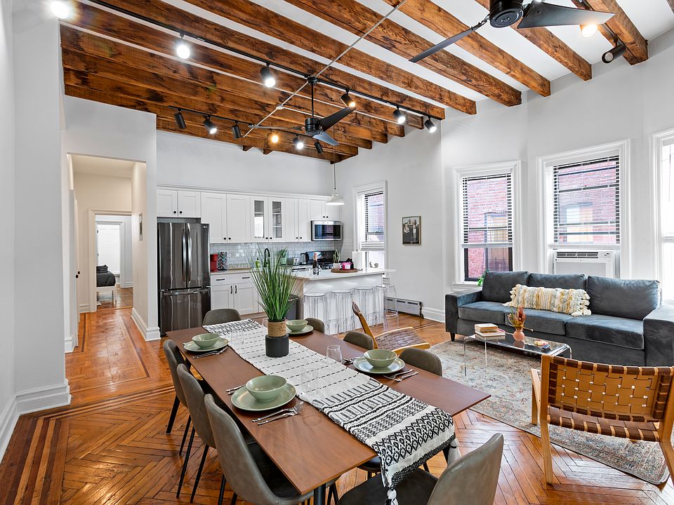 Welcome to 281 Buffallo Ave Located just steps from the subway in vibrant Crown Heights is this beautifully renovated 4 bedroom apartment in a charming semi detached house (All the pictured furniture can be included as well) This tastefully renovated home features bright, sun-filled rooms with open concept living, a gourmet kitchen, 4 bedrooms and 3 bathrooms. Step inside this spacious, inner city home and take in the gorgeous heritage features with original hardwood floors, chic exposed beams, beautiful bay windows and a new modern design The gourmet kitchen comes fully equipped with quality appliances including a prominent French door fridge/freezer, a farmers sink and a dishwasher Bedrooms can all fit queen beds, with two featuring their own ensuite bathrooms Right outside your door, you'll have easy access to restaurants, cafes, and bars along Utica Ave and great shopping along Pitkin Ave, just a 10-minute walk away. Enjoy a morning walk through the picturesque Lincoln Terrace Park just a block from the house, or play a game of tennis at the park's tennis courts, then stock up on supplies at the Eastern Parkway Supermarket just around the corner. Walk to restaurants, cafes, museums, a supermarket & Parks or take the train to Barclays, Prospect Park, and Manhattan with the subway just a 5 min walk away.