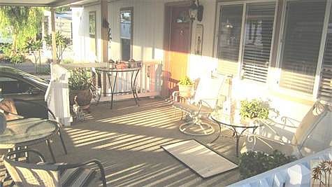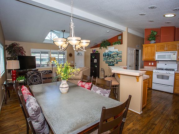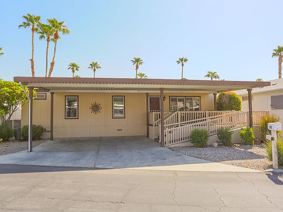 Fabulous open concept manufactured home built in 2006 with side by side carport and ada ramp and front patio. This beautiful home comes turnkey furnished with laminate floors, huge master bedroom with on suite bath. This property has dual pane windows, vaulted ceilings and skylites, inside laundry, and breakfast bar. Also included is a private enclosed back yard with red brick patio and storage shed. Royal Palms is a gated senior community with pool, spa, clubhouse, pickleball court, and putting green. This beauty won't last long so come and get it