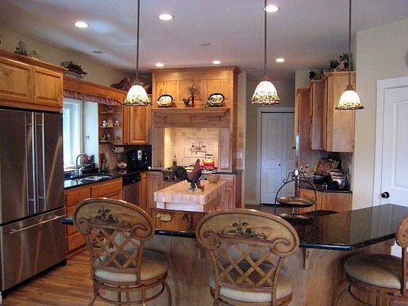 Custom Designed, elegant country home. Built in Gas fireplace in kitchen, built in wood burning fireplace in L.R., custom cabinets w/ tile & granite. 2 master bdrm suites! One w/claw foot tub & deck access. Custom rockwork both inside & out. Fully landscaped w/ end of the road privacy. Close to US Forest Service, perfect for the avid outdoorsman!