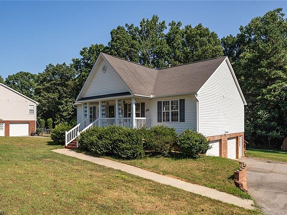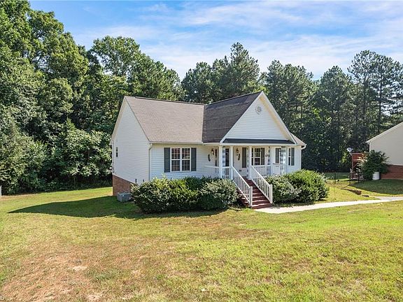 Welcome Home to Your Spacious Retreat in Swicegood Farms! This charming 3-bedroom, 2-full bath home boasts cathedral ceilings and a cozy gas log fireplace in an open floor plan layout. The kitchen features all new appliances, a breakfast area, and leads to the serene back deck overlooking the huge .49-acre lot. You'll love the rocking chair porch, master bedroom with 2 closets, garden tub & separate shower. With a 2-car garage and an unfinished basement, this is the perfect place to call home. Come experience the peaceful living in Swicegood Farms!