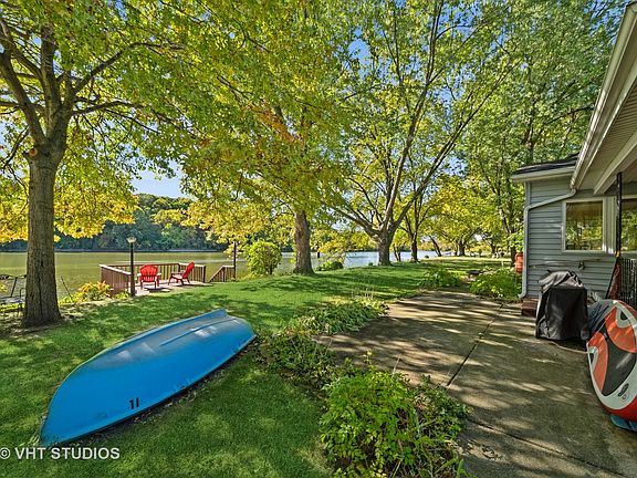 Enjoy all that Willow Lake Estates (aged 55+ community) has to offer. This water front home brings picturesque views of the Fox River right to you. Stargaze in the evenings from the private pier on the Fox River, or enjoy peaceful sunrises while watching the river flow. The private pier also provides for easy access to the river for kayaking and other water activities. Be sure to keep a look out for the local Bald Eagles nesting near by! This home features mature trees on either side of the lot extending the feel of a private riverfront oasis. The large sunroom, with heat and air, flaunts several windows flooding the room with bountiful natural light and a gorgeous view of the river. 2 bedrooms and 2 full bathrooms, a covered front porch, heated garage, covered car port, 2 driveway approaches, skylights and more. The Willow Lake Community provides both lawn maintenance and snow removal for added ease of living. Furnace/AC Package Unit installed 7/2023. Roof and siding 2016. 55+ community. Clubhouse, beach, pool, community events, walking trails, close to public transportation, easy highway/interstate access, shopping and entertainment nearby!