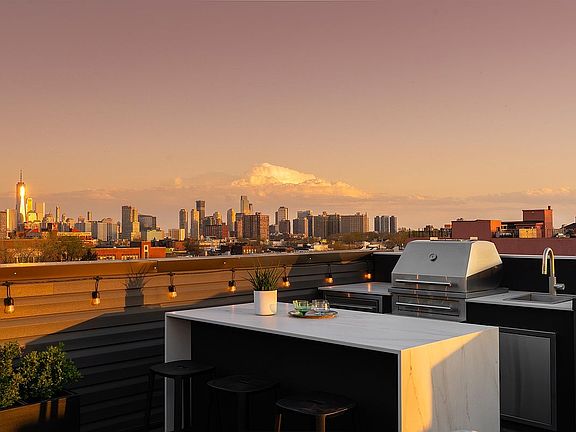 Indulge in sweeping Manhattan views and top-tier finishes in this exclusive penthouse at The Beckford. Nestled on Central Avenue in Jersey City Heights, this sophisticated residence offers style and smart-tech features. The home features direct elevator access to an expansive 1,700 sq ft of luxury, featuring 3 beds, 2.5 baths, and a private rooftop with Manhattan skyline vistas. Enjoy 560 sq ft of outdoor space with a full kitchen, including Kalamazoo Grill and Dekton countertops. Inside, floor-to-ceiling windows frame wide-open NYC and Jersey City skylines. The chic interior boasts white oak herringbone hardwood floors, smart lighting, and blackout roller shades. The chef-inspired kitchen dazzles with and Induction Range, Caesarstone quartz and Shiloh cabinetry. Luxurious baths feature Nemo tile, vessel sinks, and Kohler soaking tub. Central Ave offers access to Jersey City Heights' vibrant scene, with shops, restaurants, and Pershing Field Park nearby. Building amenities include a shared roof deck and secured entrance. Ample low-cost municipal parking in lot next to the building and various other options nearby. The Beckford was crafted in 2021 by well-known M2M Development, known for enduring quality and style.