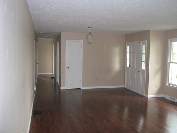 This five bedroom, three full bath, brick veneer ranch located on 1.7 acres has just been renovated. The first floor has 1780 square feet and includes three bedrooms, two full baths, living room and firelplace ( with heatilator), kitchen with refaced cabinets and new countertops,dining area,washer and dryer utility space,. The living room, kitchen, dining and hall ways have new engineered hard wood floors and the three bedrooms have new carpet. Appliances include a refrigerator, range, and a new microwave oven and dishwasher. The basement contains a two car garage and a finished 875 square foot area which contains two bedrooms and a full bath. Other features include a heat pump providing heat and air conditioning, a new 3 tab 30 year roof and new gutters (installed fall of 2013)