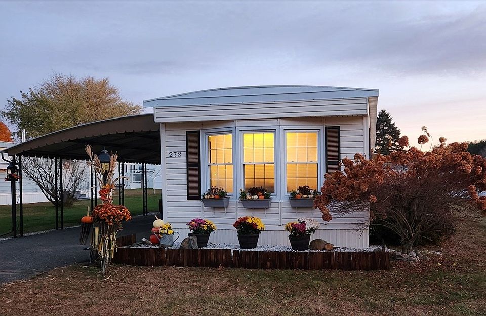 Pine Valley Plantation in Belchertown offers a serene living experience for those 55 and older, with a range of upgraded mobile homes that blend comfort with convenience. The community is known for its lush green surroundings and a peaceful atmosphere, providing residents with a tranquil environment to call home. This extremely well maintained and remodeled 2 bedroom 1 bath option, features modern amenities such as new flooring, appliances, insulation, vinyl siding, a carport, and storage shed, ensuring a maintenance-free lifestyle. The addition of propane forced air heat and central air conditioning in this home guarantees year-round comfort. With all the many upgrades, this home is designed to offer a blend of modern living and cozy charm, making #272 Pine Valley Plantation a sought-after destination for those looking to enjoy their golden years in a beautiful setting. Showings start at open house on Sunday, Nov. 3rd.