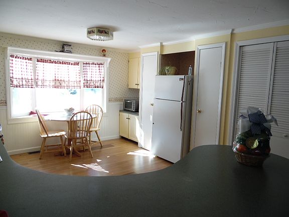Skyline 28'x70', 7-room, entering through a rocking-chair porch. Vaulted cathedral ceilings in foyer. Living room flows into dining room, with sunny eat-in kitchen with many cabinets and closets/pantry. There are two bedrooms and a computer/craft room. A large bright bathroom with garden tub and walk-in shower. Very long carport, with shed at end. Oil heat, A/C. Does not include $20,000 share.