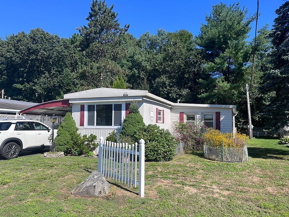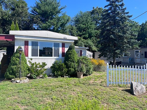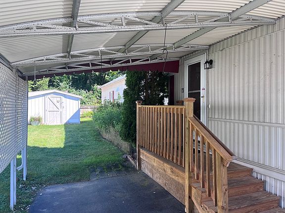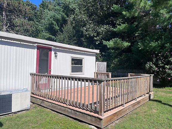 This gem is ready for you to move right in! The kitchen is bright with loads of cabinet space and a brand new picture window (2024). The carpeting in the living room, hallway and bedrooms was just installed (2024). The bathroom has new vinyl flooring and a brand new tub & surround (2024). There's a spacious addition with loads of windows and a large deck with composite decking. Keep your car out of the elements with the carport. The full size washer & dryer are conveniently located and included. A large shed is also included. This 55+ community offers 5 1/2 miles of private roads for walking or biking, three ponds, a billiards and card room and many community activities such as movie and game nights.
