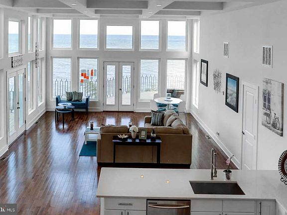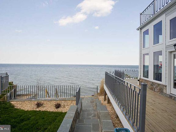 Contemporary design.4 bed/3.5 bath retreat nestled on a quiet street offers panoramic Chesapeake Bay views.Experience peaceful, upscale living in your gourmet kitchen featuring stainless steel appliances, quartz peninsula & center island countertops & hardwood floors.Perfect for entertaining or rest & relaxation.Open floor plan is inviting, bright & offers endless water views. Custom deck railing.