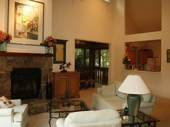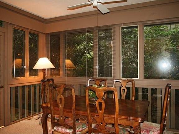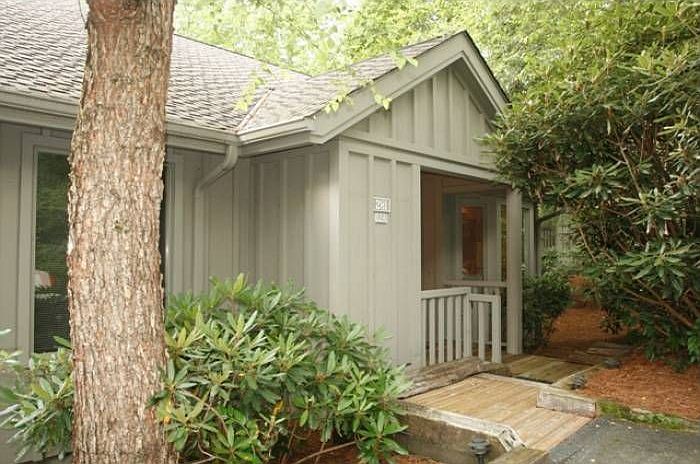 Light & bright HFCC condo with vaulted ceilings, separate dining area, large master suite with office, guest suite on the main level and a guest suite on the upper level. Private deck with some golf views.