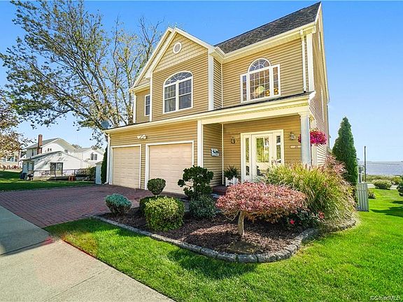 Main Level: Amenities include 9 ceilings, gleaming hardwood floors, beautiful windows throughout with amazing views to match. Top of the line stainless steel appliances, granite counter tops, maple cabinetry, dimmable recessed lighting and pendant lighting throughout. Slider door leads to large composite deck with hookup for outdoor grill. Fireplace surrounded by granite in family room along with custom built-in cabinets and shelving and surround sound speakers. Crown and baseboard mouldings throughout. Large charming entry. Upper Level: Two bedrooms with crown mouldings separated by a large full bathroom with double vanities and built-in bath/shower combo. The huge Master bedroom suite is nothing short of fabulous with water views from every angle, large windows, gleaming hardwood floors, three closets, vaulted 18 ceilings with large paddle fan, recessed lighting, separate large private office area overlooking LI Sound with a spacious balcony accessed from the office or the bedroom. The completely custom spa-like master bathroom features vaulted ceilings, marble counter tops with double sinks, massive double built-in vanity cabinets, built-in LCD television, heated towel bars, separate marble vanity for makeup application, custom spa shower with large rain head, body sprays, and separate hand-held shower with glass enclosure and incredible views. Custom cabinetry and Brazilian cherry hardwood floors complete this incredible master bathroom. See additional remarks. Lower Level: amenities include finished basement and entertaining area complete with full bathroom, relaxing steam shower, 12x12 tile, wainscoting, crown moulding, custom-built decorative cherry pub service bar with hammered copper ice well, stainless steel refrigerator and wine fridge, built-in large screen TV with surround sound, dimmable recessed lighting throughout, slider door with amazing water views, separate utility room, accordion storage closet, walk-in storage closet. Summary of Interior amenities: Central alarm/security system with carbon monoxide detector Central AC/Heating with four zones Large windows and slider doors with outstanding water views from most rooms Hardwood floors throughout Spacious attached two-car HEATED garage 3 1/2 bathrooms in total featuring a large custom rain shower and a steam shower Upstairs convenient laundry High ceilings throughout Gas fireplace Direct gas hookup for outdoor grill Natural gas appliances Exterior features: Vinyl wood-grain siding Thick decorative white vinyl trim Architectural shingles Composite decking with vinyl railings Newer decorative herringbone brick paver driveway Irrigation system for lawn Curtain drains along perimeter of house Underground drainage from gutters and leaders Fully enclosed outdoor shower Full patio off of Lower level connecting to beautiful outdoor spa Composite deck with a pool and rock wall landscaping around pool Natural gas heater for pool Playscape area with spongy rubber mulch for safety Well kept lawn/yard with incredible water views while staying private at the same time Prospect Beach Fish & Game Club across the street for boat or jet-ski launching. House is close enough for amazing views but far enough for peace and quiet and a huge break on having to pay direct waterfront taxes.