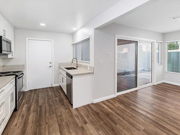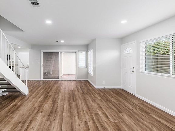 Charming TURN-KEY townhome in Village Park! One of the largest floor plans with all three bedrooms and two full baths upstairs. The primary bedroom has a private balcony and a full wall of closet storage. Downstairs features an open layout, spacious living room with a wood burning fireplace, galley kitchen, private patio, half bath, and a bonus room that can be used as a walk-in pantry or private home office. Attached two car garage with direct access has a laundry area and ample storage. Complete top-to-bottom renovation in 2018 included new kitchen cabinetry, quartz countertops, appliances, all bathroom finishes, luxury vinyl flooring, doors and windows, window coverings, recessed lighting, furnace, and more. Walking distance to parks, community pool, and award winning Encinitas Schools!