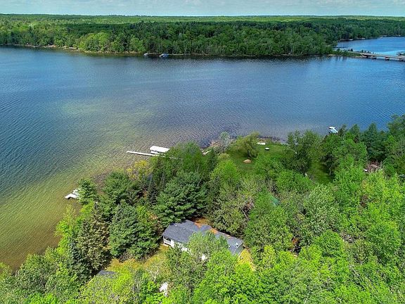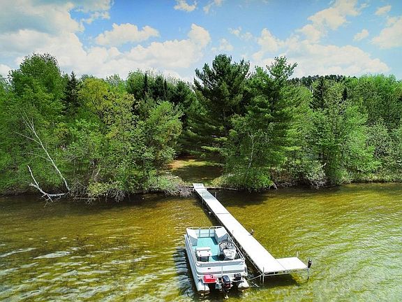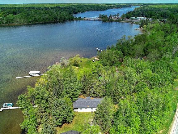 If a LEVEL lot...LEVEL to 245' of lakefront is what you dream of, add this to your "must see" list. Big flat sandy lake bottom between shore & end of dock: AWESOME for kid's recreation! End of road privacy. Very close to Outing (food, gas, gifts, & more) Right by the trails for both ATV and snowmobile. You will feel like part of the action instead of tucked off in the woods somewhere...yet relax on porch: very private & great lake views! Big 3 br 2 bath home & 3 car garage plus 16x10 shed