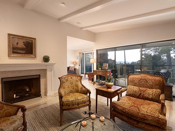 Welcome home to your dream escape in the highly coveted retirement community of Del Mesa Carmel. This romantic retreat and most popular "B" model, boasts the perfect blend of sophistication and ease of living with its high ceilings, custom lighting & abundance of natural light. A gourmet kitchen with stainless appliances, gas range, ample counter space & thoughtful design makes cooking a pleasure. A separate den/office retreat is the perfect place to unwind. Gather around the warmth & glow of the charming gas fireplace in the great room. Enjoy the calm, peace & quiet of the elegant primary suite. Let your private deck become your outdoor sanctuary for sipping wine as the sun sets or savoring a morning coffee surrounded by the spectacular views & sounds of nature. This is a "level in" opportunity with NO STEPS. Del Mesa has consistently been voted the #1 Retirement community on the peninsula. Enjoy the culinary delights of "Woody's Restaurant" in the clubhouse, the indoor heated pool & spa, gym, lawn bowling, acres of beautiful landscaping, on-site maintenance, 24/7 guard gate, activities, cultural events, parties & the vibrant sense of community that is yours to cherish in Del Mesa.