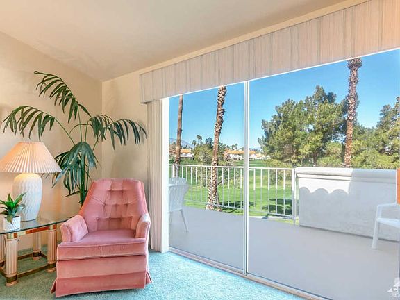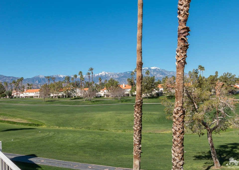 Enjoy the verdant views of multiple golf course fairways with a backdrop of snowcapped mountains from the back deck of this upper level condo. Ideally situated away from a golf ball landing area so you can enjoy the blue skies and relaxing views worry-free. Completely turnkey furnished, this immaculately maintained condo, with newer a/c, is move-in ready. Desert Falls CC is located mid-valley with easy access to I-10. Dining, retail, and groceries are within walking distance, or a quick golf cart ride. Homeownership in Desert Falls includes an active community with updated fitness facility, 9 lighted tennis and pickle ball courts. Country club membership is available, but not required to enjoy dining at the club house or a game of golf.