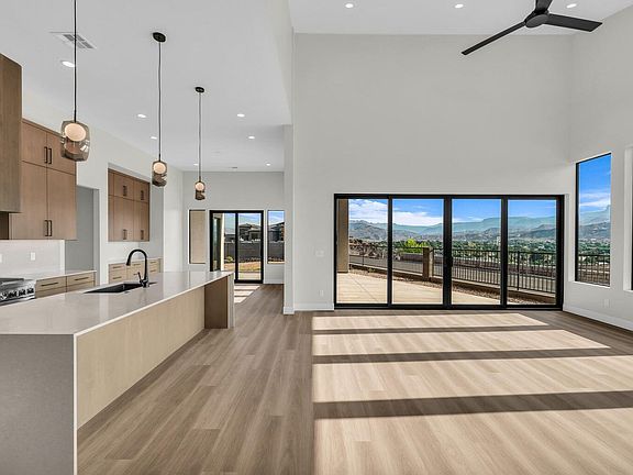 Welcome to your dream home just 35 minutes from Zion and 20 minutes to Sand Hollow! This brand-new build showcases stunning upgrades including expansive picture windows, a kitchen hutch, upper cabinets, and modern lighting. Enjoy breathtaking sunrises from the open kitchen, dining, and great room with views of the Virgin River bridge and surrounding mountains. A full casita with its own kitchen and washer/dryer offers privacy for guests or long-term stays. Double sliding doors lead to a spacious covered patio, and with the backyard pre-plumbed for a pool, you can create the perfect oasis to match the view.