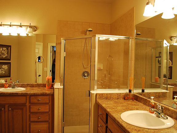 You will be amazed when you walk in at the size and luxury that awaits. The main level features a large living room with a three sided gas fireplace, separate dining room with a coffered ceiling, and a spacious kitchen. The kitchen has wood floors, a counter bar, upgraded stainless steel appliances, recessed lighting, gas stove, upgraded cabinets and tons of counter space as well as a breakfast nook with wood floors and the other side of the three sided fireplace that walks out to the composite deck for spectacular views. The upper level has a large master bedroom suite with an attached bath with two separate vanities, stand alone shower and a big walk-in closet. Two additional bedrooms on the upper level, one with a walk-in closet, and a full bath with double sink vanity and oval soaking tub. There is a convenient upper level laundry. The fully finished, walk-out lower level has an expansive second family room, fourth bedroom, storage area with shelving and walks out to a patio. The home has upgraded lighting, ceiling fans in the bedrooms and living room, and air conditioning. The clubhouse is a short walk from the property and includes use of a pool and year round hot tub, exercise room and community area. Both Mountain and city views and a great location close to I-25 for shorter commutes to downtown or to Denver, easy access to walking and hiking trails, close to tons of restaurants and shopping.