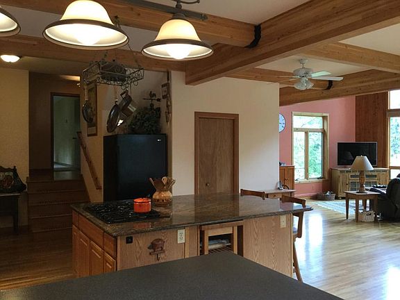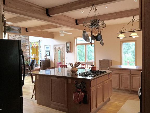 Endless opportunities in this beautiful, well built home! 3 bedroom, 2 bathroom main living with a 2 bedroom, 1 bath lower level apartment with it's own kitchen and walk-out door that could easily be a VRBO. This home features a sauna, a dumb waiter from garage to kitchen pantry, gas fireplace and radiant floor heat and new trex decking. Tons of storage with a partially heated 38x38 Shop/Garage, 28x48 RV building, 9x16 covered boat shed and a 12.5x38 carport. Very private setting with mountain views and paved roads!