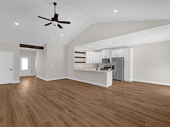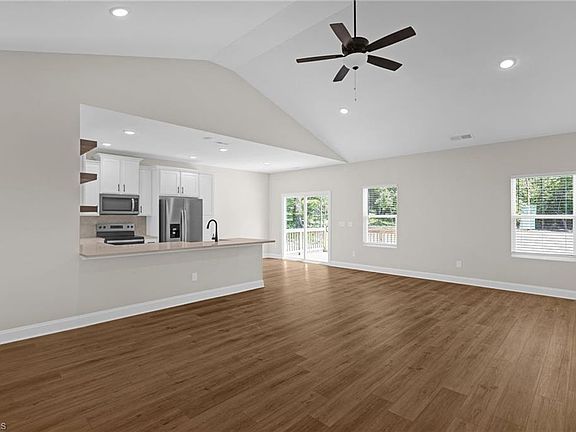 Welcome to this beautifully crafted 3-bedroom, 2-bathroom, located just 20 minutes from Greensboro. This thoughtfully designed home boasts an open floor plan that provides a perfect flow for both everyday living and entertaining. The heart of the home is the gourmet kitchen, featuring granite countertops, custom cabinetry, and stainless steel appliances, making meal prep and hosting a breeze. The spacious living areas are bathed in natural light, offering a bright and welcoming ambiance. Retreat to the primary bedroom, complete with a luxurious en suite bathroom. Enjoy the dual vanity, a glass-framed shower with custom tile work, and all the modern touches you'd expect in a brand-new home. Journey outside onto the deck, where you can unwind and take in views of the private backyard—the perfect spot for outdoor relaxation or entertaining guests. The 2-car garage offers plenty of storage space and convenience. Paved Driveway! Will be completed by 4/30/25