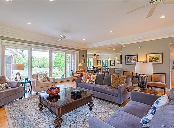 This custom built waterfront home has everything you could need for a full time residence or weekend getaway. With 5 bedrooms and 3.5 baths there is ample room for family and friends. The wide views of Owens Pond can be seen from the large open living room, kitchen and dining area, first floor master, waterside deck and screened porch. A unique and lovely garden has been added to the front yard. Custom features include high ceilings, crown molding, granite countertops, double ovens, maple floors, cherry cabinets, baths with tiled walk-in showers, and oversized front door into entryway. There is a whole house multi-zone audio system that extends out to the deck and screened porch, and there is an alarm system. The home also has many upgraded features such as hardiplank siding, generator, wine cooler, floor safe, tankless water heater, and bonus room. The 2.5 car garage has a utility room and attic access. From the dock there is easy access to the Chesapeake Bay.