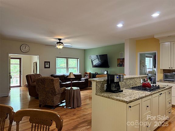 Spacious 3-br., 3-bth., 2594 +- sq ft home nestled on 1.44 wooded acres. Main level boasts 9-foot ceilings, authentic Oak hardwood floors, Mission-style cabinetry, granite countertops, gas cooktop, built-in oven and dishwasher, spacious primary bedroom with ensuite bath and Infinity shower, additional 224 sf climate controlled spa room w/8x11 swim spa, laundry and tranquil screened in porch. Walk-out basement serves the owner's business and includes a bedroom, bathroom, laundry closet, family room with putting cups, pantry room, safe room area ready for full-size safe door installation. Features include 10' tall garage door, on-demand hot water, 6-inch gutters and low maintenance exterior. Home utilizes an 18-panel expandable solar system with two 10-kw storage batteries, dual fuel heating system, R-19 wall insulation, and insulated composite siding. NO HOAs. Lots of paved parking. Easy access to many area amenities including golf, Ecusta Trail, Pisgah Forest and Dupont State Forest.