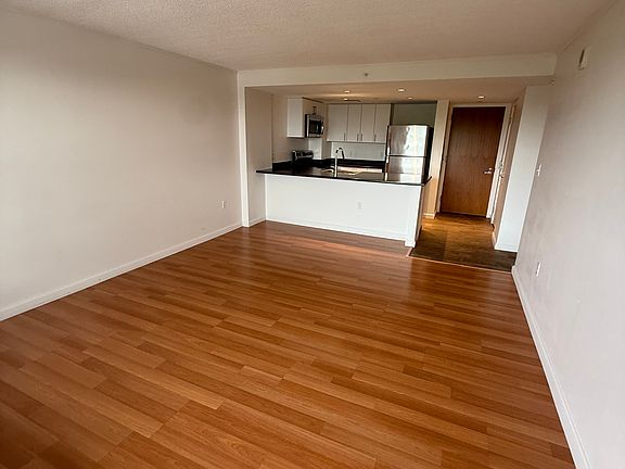 295 Harvard St, Cambridge Move in NOW OR 10/15 THE LATEST Luxury fourth floor 2 bed 2 bath corner unit. King sized bedrooms. Hardwood floors throughout with stunning natural light. Renovated stainless steel kitchen with huge kitchen island. Big private deck with Boston skyline views. Gym and laundry facilities in the building. Garage parking for rent, and free bike storage. Mid Cambridge location very close to two major red line connections.