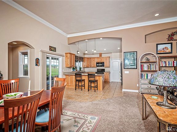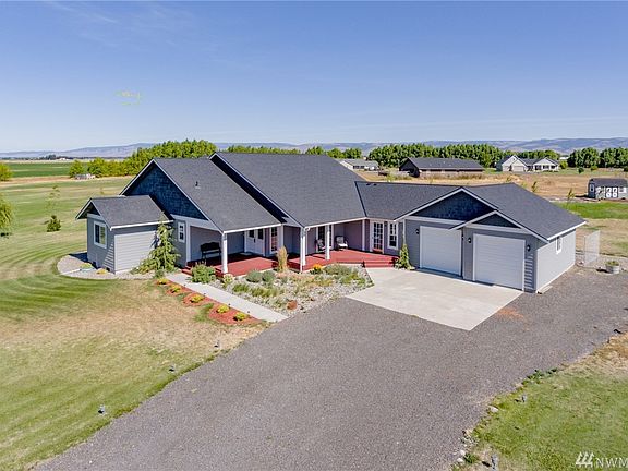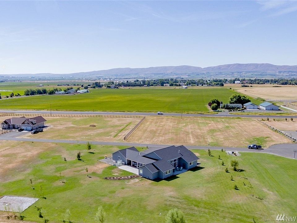 Custom home with quality features such as wide crown molding, tray ceiling & indirect lighting in office and master suite, rich cherry wood flooring in office and foyer plus impressive 12 foot ceilings in great room with a wall of view windows and 5 Arcadia doors! Kitchen with granite counter tops and top line appliances that include a new Bosch dishwasher, double ovens, and 2-drawer freezer. Oversize master bedroom with roomy bath including a walk-in shower and jetted tub. Additional bedrooms w/shared full bath - use as a second master - each with walk in closets. Additional 3/4 hall bath. Efficient heat pump system with a new central humidifier. Two covered and protected porches, one with connected patio ? awesome large outdoor living space. 2 acres with extensive landscape and underground sprinklers using the KRD irrigation water. Fenced garden area, fruit trees and a shuttered storage shed/chicken coop painted to match the house. No detail overlooked!