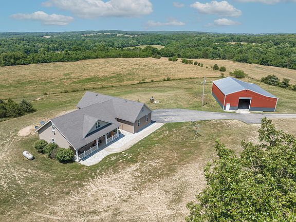 What an opportunity! This over 390+/- acre property is conveniently located southeast of Buffalo along the Niangua River. This property offers countless possibilities including farming and ranching to hunting and recreation. The charming house seamlessly blends country & modern styles. It features a welcoming covered Porch spanning the front, while inside, the Entry impresses with 16-foot ceilings. The Living Room boasts a cathedral ceiling, a gas log fireplace & the Formal Dining Room adds an elegant touch. The spacious Kitchen includes an island, electric cooktop, double wall oven & dishwasher. The Main Floor showcases engineered wood flooring, a split 3 Bedroom layout & a convenient Laundry Room. The Master Suite offers engineered wood flooring, a double vanity, walk-in shower, separate toilet room & His 'n Her closets. Bedrooms 2 and 3 share a Jack 'n Jill Bath while Bedroom 2 stands out with its own private access to an awesome Loft overhead, offering popularity, versatility & functionality. The Basement includes a 2nd Living Area, Half Bath, Mechanical Room with storage & outside access. This space can be customized to suit your needs, whether it's a recreational area, home office or additional living space. This house is a perfect blend of style, comfort & functionality. The property offers several outbuildings including 40x 60 x18 shop with concrete floors and electricity built in 2019, 40 x 60 machine shed/cattle barn with 10' enclosed lean-to, and a large hay barn for feed storage. The nice balance of wooded and open ground provide for plenty of room for livestock and hay production while maintaining a sanctuary for all the wildlife. The over 1 mile of Niangua River that flows through the property offers year round live water for recreation. Schedule your private showing today.