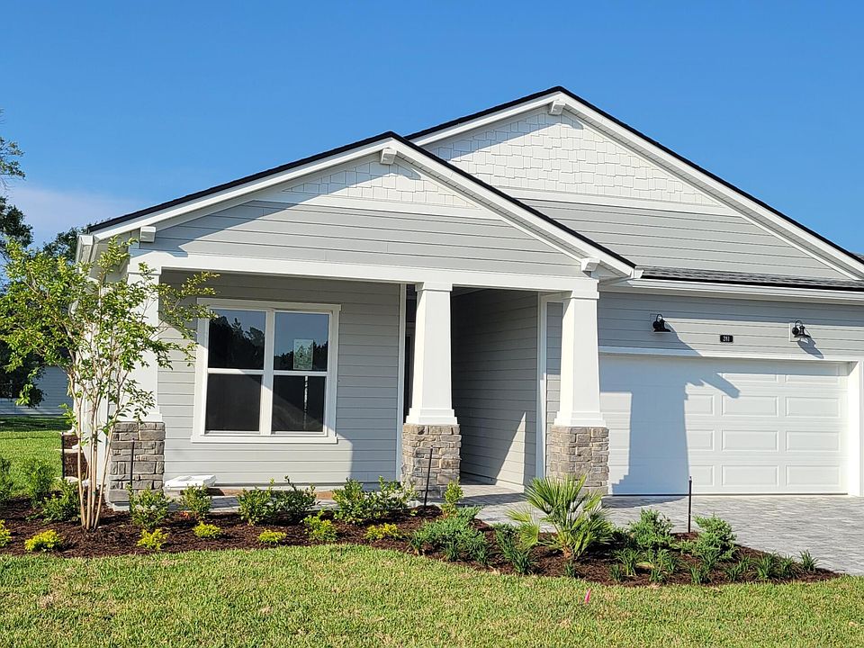 Ready to move in! This stunning Delmore Craftsman by Toll Brothers is a one-story home. The Delmore features an open plan concept with a very large great room, situated off the casual dining room. The gourmet kitchen features new Kitchen Aid gas cook top/oven, modern Kohler faucets and is complete with a walk-in pantry. The home is situated on a very large corner home site which is 105 x 135 or 13,505 s.f. with a beutiful large Oak tree and view of the lake. There is plenty of room to add the pool of your dreams. Large primary bedroom, flex room, and large primary walk in closet connected to the laundry room. Three 3 car garage. Tankless gas water heater. Pre-plumb for water softener, fully irrigated yard with re-use water. Walk the kids to Top Rated Hickory Elementary, Swiss Point Middle School, and Bartram HS. Bartram Ranch is a Natural gas community in the heart of St Johns. New Amenity Center includes Clubhouse, Pool, Fitness Center, Dog Park, Tot-Lot and a Multi-Purpose field.
