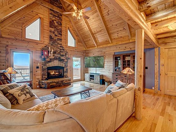 For those looking for an outstanding vacation rental that can also be used for your family's enjoyment, this one checks off all the boxes! "The Owl's Perch" has grossed over $70K in 2021. Perched 2300 ft above the trees you'll enjoy stunning MTN VIEWS with magical sunrises & spectacular sunsets! Located NE of Lake Blue Ridge & across the road from 1000+ acres of National Forest, in a small gated community with all PAVED RDS, Good Internet, 15 min to Blue Ridge. This 4BR/3.5BA comes turnkey furnished, great condition w/long list of recent upgrades; Sleeps 12, open concept, exposed beams, soaring vaulted ceilings, gas stone fireplaces, well appointed kitchen & terrace level offers an abundance of family recreation. Enjoy outdoor living on huge decks & porches, firepit, luxury 7 person hot tub, turfed area for cornhole. Offer deadline is 12 noon on December 8th.