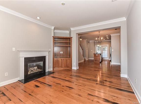 Adorable townhome in the heart of historic Wesley Heights! Open floor plan with lots of natural light. Crown molding, 9 foot ceilings and hardwoods on 1st floor. Living room features gas fireplace and built ins. Upgraded kitchen includes 42 inch cabinets, large island with double stainless sink, granite countertops, stainless steel appliances. Two bedrooms upstairs each with their own bath and large closets. Private, fenced patio backs up to Wesley Heights Greenway. Good storage under stairs, outdoor closet and attic. Community courtyard features a pergola, grill and fire pit for socializing. Freshly painted throughout. Refrigerator, washer and dryer included. Great location, less than 2 miles from Uptown and Southend. Walk or bike to restaurants, breweries, Panthers games and more!