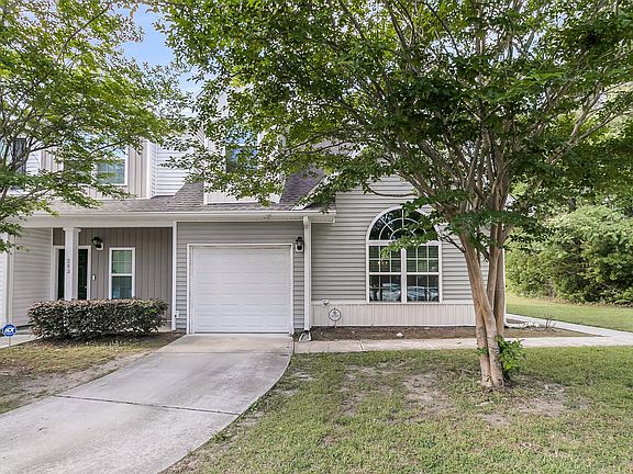 Welcome home to Lakeview Commons! Discover the perfect townhome located in the heart of Goose Creek. Those who desire the comforts of home ownership without the hassle of exterior maintenance will love this end unit ''Garfield'' floor plan, featuring a spacious open floor plan. The downstairs boasts the primary bedroom, a spacious living room, plus an impressive eat-in kitchen complete with a pantry, perfect for entertaining. The kitchen bathes in natural light illuminating from the round-top window, and the ample cabinet and counter space make it perfect for any Chef! Host perfect gatherings or relax in the dining area, located between the kitchen and the living room, or relax after a long day.Vaulted ceilings in the living area make this space feel both cozy and spacious at the same time. The generously sized owner's suite off the living room comes complete with a full ensuite bathroom with dual vanities and a large walk-in closet. Upstairs you'll find a spacious loft overlooking the living area, another bedroom with walk-in closet, and a full bathroom. There's also a covered patio located out back, accessible through the living room, and with the convenience of townhome living, you'll be able to enjoy the outdoors with no concerns of mowing the yard, or pressure washing the house. The side entrance to this end-unit offers an extra level of privacy, and the one-car garage and large driveway provide plenty of space for parking. The neighborhood playground, park, and pool, located near the Lakeview Commons entrance, are just a few of the amenities you and your family will surely enjoy as a resident of this quiet community.