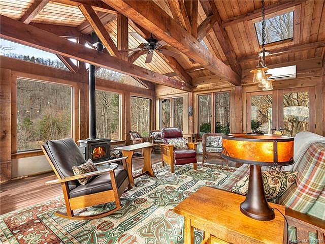 Perched on over 12 acres sits this stunning Asheville mountain estate (complete w/ separate guesthouse) enveloped by the Blue Ridge Mountains, yet mere minutes from vibrant downtown Asheville. Brimming with features such as natural mineral plasters and solar hot water, this estate home is the very essence of understated elegance. Entertain family and friends in the great room highlighted by walls of windows displaying stunning long range mountain views, or prepare a Sunday meal in the custom kitchen featuring professional grade Viking appliances, double oven, and handsome heart wood beams and accents throughout. Cozy up by one of 2 stone fireplaces, or retreat to you master on main w/ sitting room, private access to patio, and gracious en-suite bath. Grounds feature a babbling brook and fenced pasture. Separate apartment just perfect for guests/rental/in-law suite!
