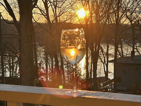 This home features an open floorplan with vaulted ceilings and wood beams in the Living room, Dining and Kitchen area. The kitchen has a bay window allowing more water views of the lake. The living room has a beautiful stone fireplace with gas logs. Primary bedroom offers a walk in closet and en-suite bathroom. There are two spacious bedrooms with ample closet space. The hall bath has a separate shower and toilet area from the double sinks allowing for extra privacy. The skylight above the sinks allows lots of natural light to shine in. There is a small fenced area on the side and back of the home along with a closed in area suitable for more outdoor living space, storage, gardening shed, keep dreaming! The walk in crawl space is currently used as a small workshop and has plenty of space for lake toys. You do not want to miss this one!