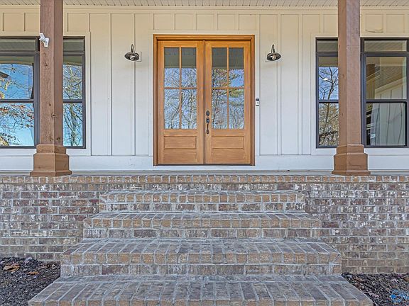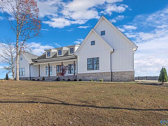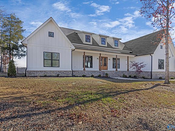 Enjoy spectacular views from every room in this modern farmhouse custom home! Featuring an open concept floor w/ isolated master suite- which offers a LUXURY experience. Enjoy seeing the waterfall during the wet season from your shower! The master closet is MASSIVE (11x12) includes an island..and to top it off, it's connected to the large laundry room! Walk in pantry offers tons of storage, farmhouse sink with a VIEW! Covered backporch w fireplace perfect for entertaining! Land continues down the bluff for another 2 acres, so when the outdoors call your name off you go! All of this and you are only 10 minutes from the amenities of South Huntsville! Too much to list! Must see for yourself!