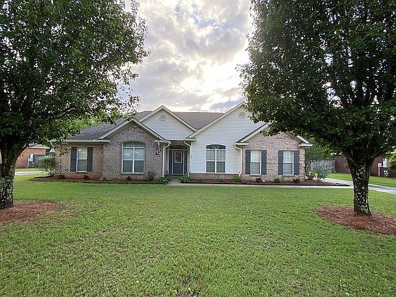 As you enter through the front doors, you are welcomed into this spacious, open floor plan. The home has a split floor plan with master bedroom on one side, off the kitchen and the guest rooms on the other side of the home, off the great room. The great room features hardwood floors, double trey ceilings, corner gas fireplace, and french doors that lead you outside to the covered patio. The hardwood floors are continued through the hallway to three large guest rooms, one with a vaulted ceiling, all with large closets, a hall linen closet, and large guest bathroom with ample storage and a tub/shower combo. The master bedroom is huge and features trey ceilings, his and hers walk-in closets, and attached master bathroom with double vanities, jetted tub, and separate shower. The dining room is a large space for entertaining guests, located right off the foyer. The kitchen maintains an open feel and has a pass-thru into the family room, as well as a breakfast bar separating it from the breakfast area, which is large enough to comfortably house a table for 6. All appliances were replaced in 2017 and stay with the house. Off the breakfast area is the laundry room, featuring lots of storage, room for an upright freezer, and a pantry with pull-out shelving. It also has entry to the covered 2-car carport. The back yard is a beautiful, private space, fully fenced, and overlooks an open field behind. There is a covered patio with concrete slab. There is also a wired storage shed and a children's play set that will remain. HVAC system was replaced in 2019. Gutters were added to the front and back in 2019. Please call or text April Ray to view this home.