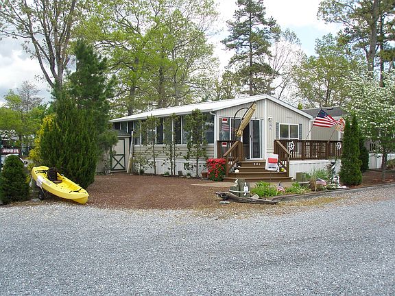 Beautiful 1998 Breckenridge, corner property with newer trees and shrubs. Fully furnished, full sized mattress in front room bought in 2016 (used two nights), laminated floor in bathroom, kitchen, dining area and Florida room. Roof, heater/air conditioning unit, hot water heater is three years old. tinted Florida room windows, storage building. Large deck with umbrella and table. Sleeps eight. Fully insulated under the Florida room. Outdoor gas grill. The newest section of the park with access to additional parking and convenient to the newer laundry and summer bath house. Three season dream vacation spot only minutes from beautiful island beaches and boardwalks or relax an stay put enjoying your own, never crowded beach at Holly Lake. Open March 1 to December 1. Enjoy the pool, playground, basketball court, shuffleboard, ping pong and air hockey, fishing at the lake, may use canoe or paddle boat in the lake. Clubhouse has assortment of books that you can take and read. Clubhouse may be rented for events.