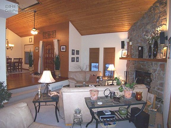 Sugarloaf home in sunny and peaceful setting. Gorgeous views of the plains and city lights! Situated on 2+ acres with seasonal stream. Easy access, close-in location only 15 min. to Boulder. This warm & inviting home offers a comfortably flowing floor plan with unfinished walkout basement for future expansion. Two decks, central A/C, loft study, vaulted ceilings, skylights. High quality internet service with fiber optic cable. Main floor bedroom w/ bath. This home is in move-in condition!
