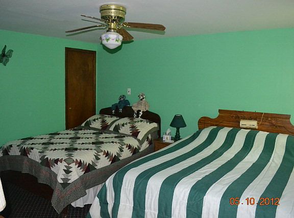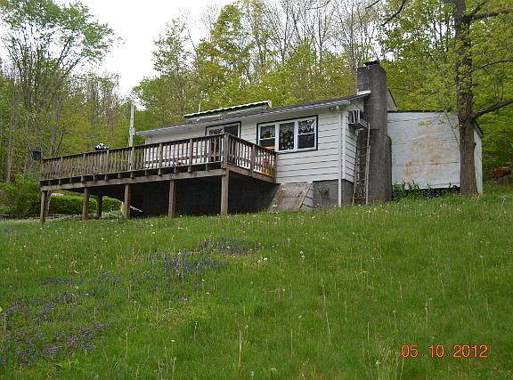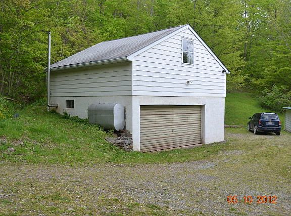 Perfect get away or full time home this 2 bedroom ranch style cabin/home with a 2 story garage and a bunkroom upstairs for the guests. Sit on the deck and enjoy the turkeys in the front yard Large living/dining room combo with a wood burner to keep warm in the cool weather Partially furnished.