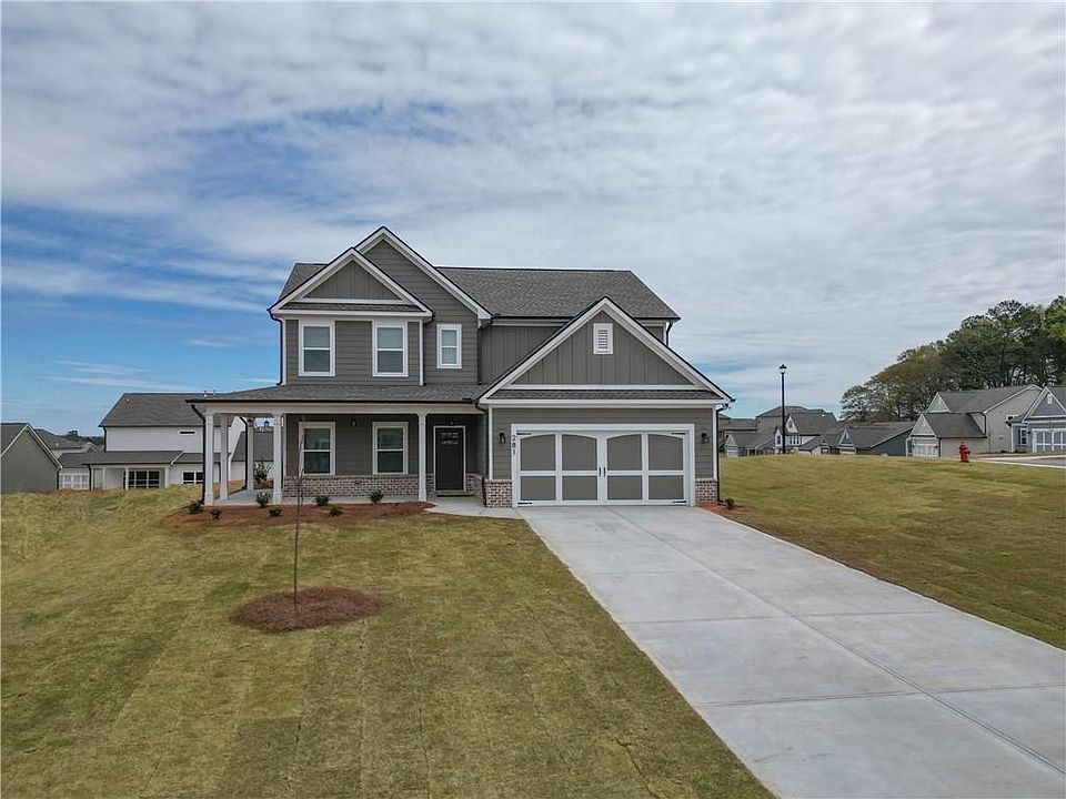 The Hunter - Beautiful 5 bedroom / 4 bathroom, two story home with a welcoming wrap around porch. Bright entry leads to the dining and open concept living area. Chef kitchen with gourmet serving bar, double wall oven and stainless steel farmhouse sink opens to the large living room with gas fireplace. The full bedroom and bath on the main level are perfect for guests. Upstairs, the Owner retreat features a tray ceiling, double vanity bath, separate tub and Tile shower plus a lavish closet. The upper level also has 3 secondary bedrooms and 2 additional bathrooms. Gated community, large clubhouse, pool, playground, and 2 tennis courts. Gates are open from 7am - 5pm daily and closed all day Sunday. **$5K BUYER INCENTIVE WITH PREFERRED LENDER.**