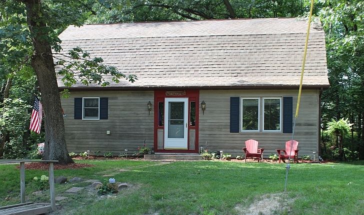 A CHARMING GEATAWAY COTTAGE with 2 bedrooms, 1 bath, and a walk-out lower level. Interesting interior construction perfect for creating a cabin atmosphere. Tucked away at the end of a cul-de-sac. The owners say it's sooo quiet! New appliances and central air. You need to see to appreciate.