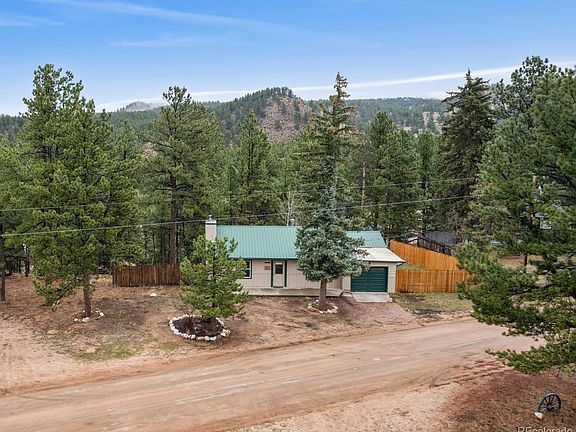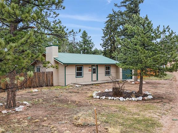 Welcome to this inviting three-bedroom, one-bathroom south-facing ranch-style home, ideally situated on nearly half an acre nestled in the heart of Florissant. Combining the charm of a mountain cottage with everyday convenience, this property is just minutes from Highway 24, Teller County Road 1, the Florissant Library, Fire Station, Fossil Beds National Monument, as well as local restaurants, shops, and more. Step inside to discover a bright, open-concept living space filled with natural light. The living room features a cozy wood-burning stove insert, perfect for relaxing or entertaining, and flows seamlessly into the kitchen. Enjoy easy access to the fully fenced side yard and patio—an ideal space for pets, gatherings, or quiet outdoor enjoyment. The kitchen offers a sizable amount of counter space, a stylish farmhouse sink, and rich butcher block countertops, combining functionality with rustic elegance. Please note: the third bedroom is accessed through the second bedroom, making it a versatile space well-suited for a home office, nursery, or guest suite. Thoughtful upgrades over the past five years include a new wood stove insert, furnace, garage door opener, gutters, custom bathroom vanity, and a fully enclosed side yard—enhancing both comfort and value. Don't miss this opportunity to own a peaceful mountain retreat where timeless character meets modern convenience.